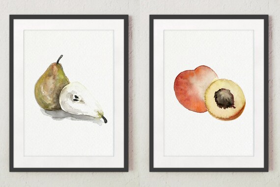 Digital Art Print Colorful Fruits Set 2 Watercolor Paintings Abstract Canvas Loft Suite Wall Clipart Decoration Fruit Motive Hygge Art